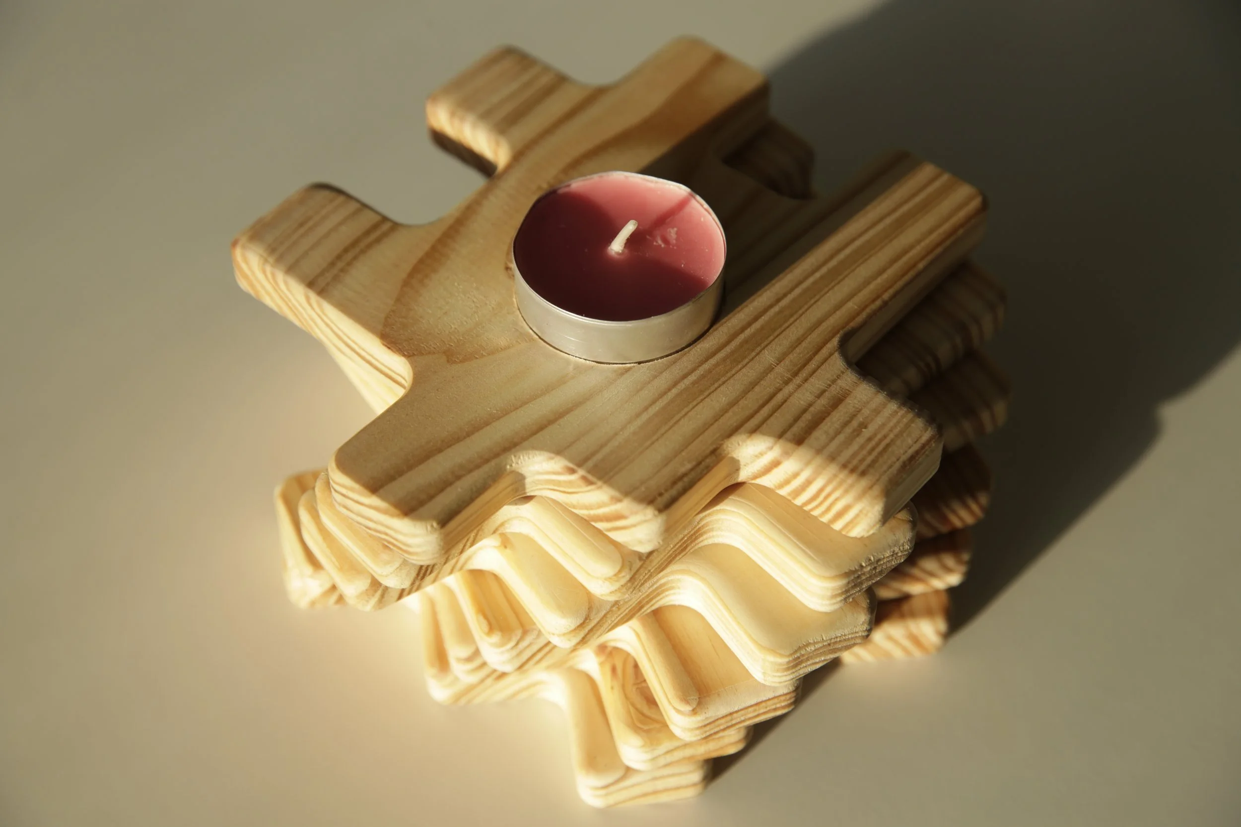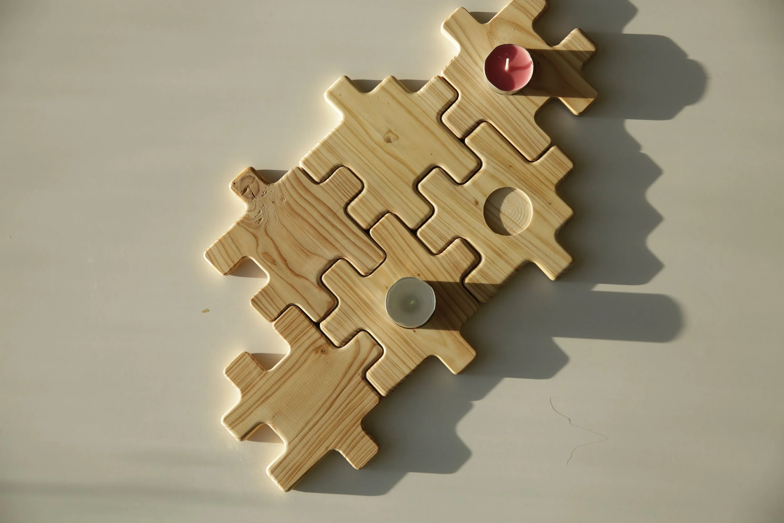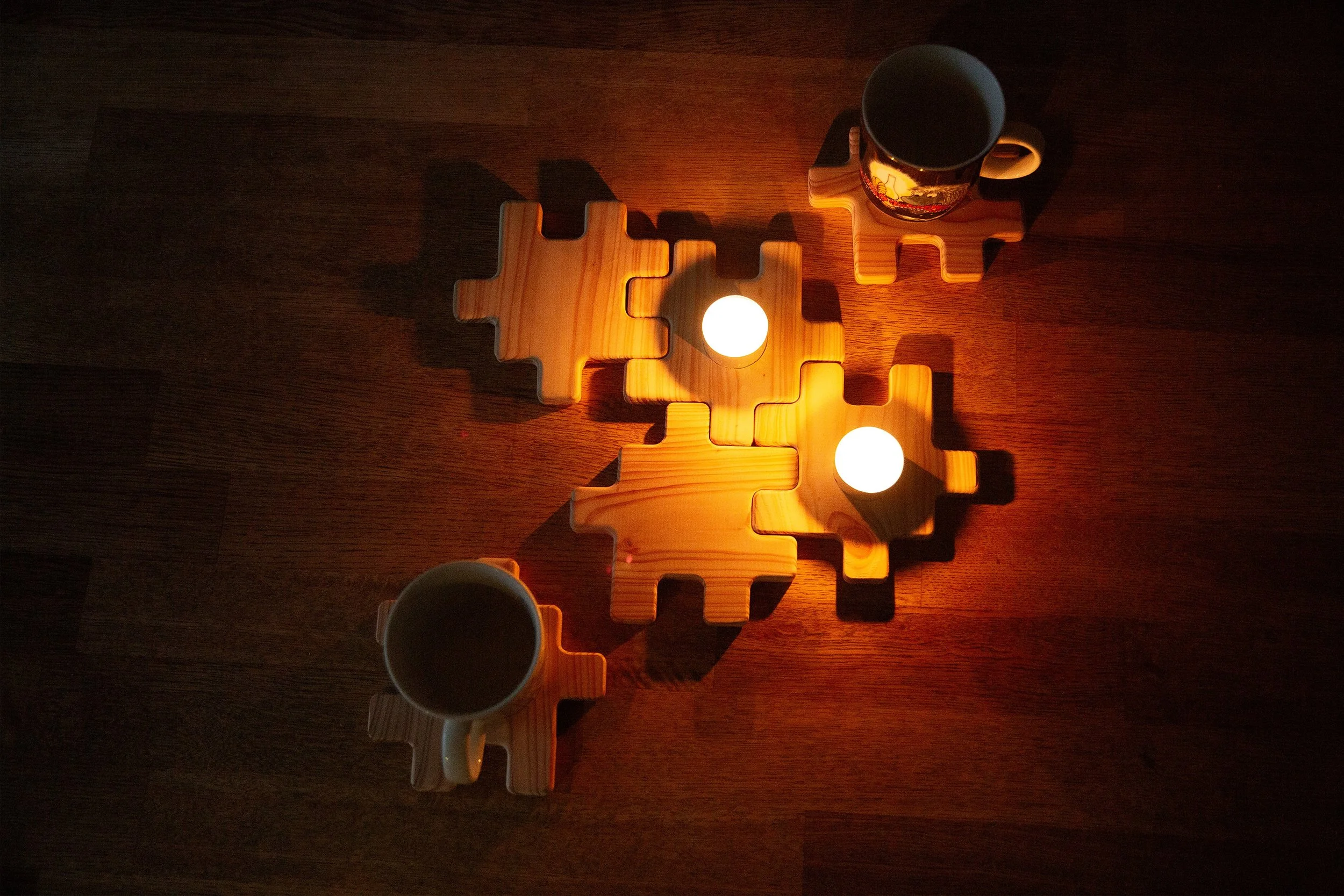 Each piece can also be used as a coaster or when flipped over a tea light perfectly fits inside a shallow recess for any time the dinner table needs to be a little more cozy.