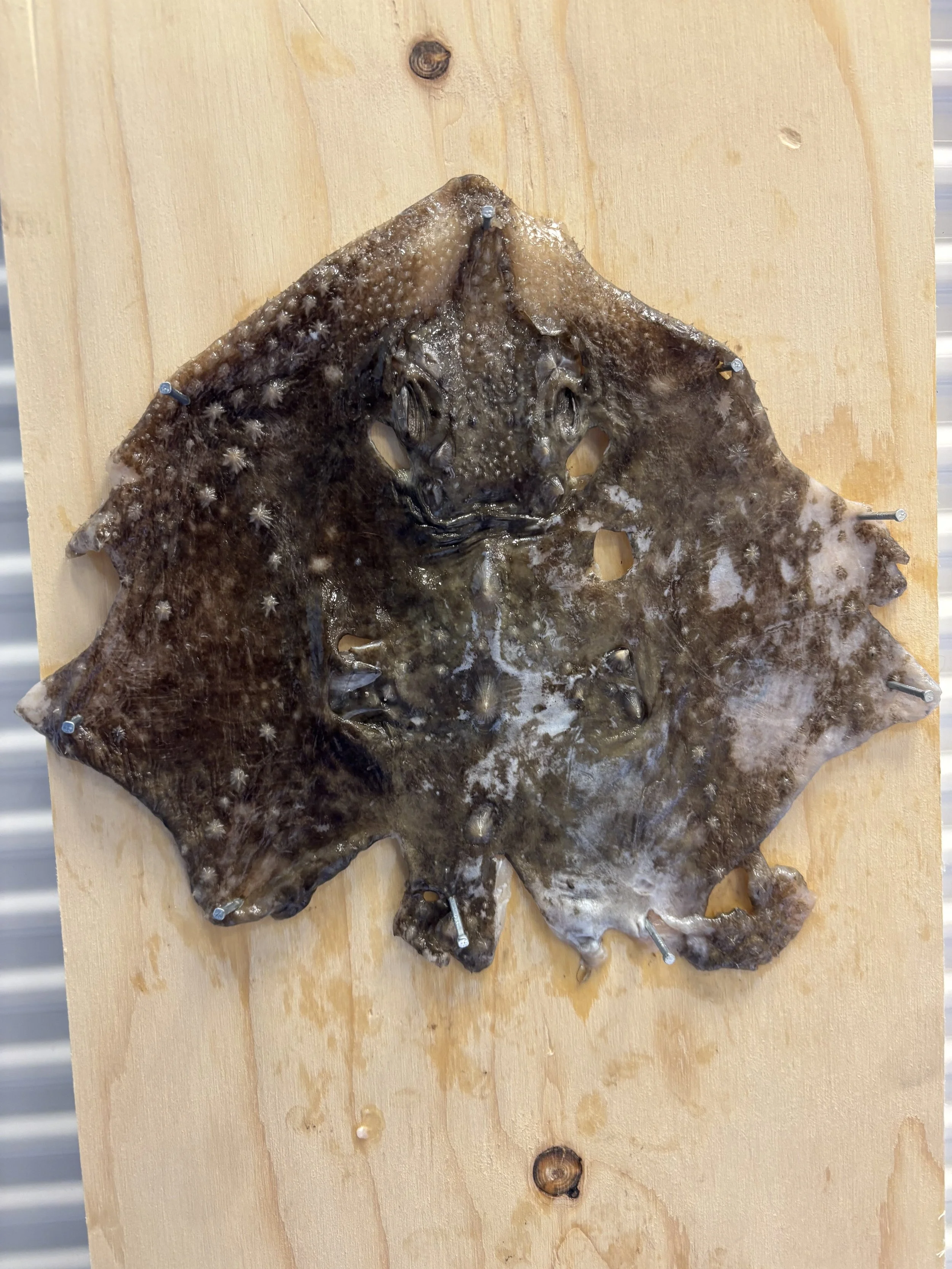 Til að húðin verður notuð í eitthvað þá væri hægt að taka hana af skötunni áður en hún verður hent eða kæst. Húðin er svo sett í sápu bað og svo í olíu bað eftir á, hún er svo sett í mót og þurrkuð þannig hún verður nokkurskonar leður sem hægt er að búa til lampaskerma. Það verða nokkrar stærðir af mótum fyrir mismunandi stærðir af skötum þannig hægt er að nota sem mest af húðinni.